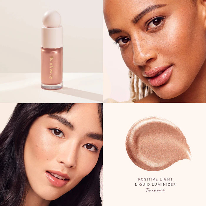 El Positive Light Liquid Luminizer Highlight de Rare Beauty es un iluminador líquido que aporta un brillo luminoso y natural, diseñado para realzar la piel con un acabado fresco, radiante y de efecto saludable. Su fórmula ligera y modulable se funde perfectamente con la piel, creando un resplandor suave que nunca se ve pesado ni exagerado.