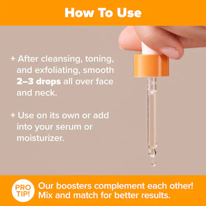 Enriquecido con vitamina E y ácido ferúlico, potencia la estabilidad y eficacia de la vitamina C, proporcionando protección antioxidante frente a los daños ambientales y los radicales libres. Su textura ligera se absorbe fácilmente y puede usarse solo o mezclado con tu suero o crema hidratante habitual, adaptándose a cualquier rutina de cuidado facial.