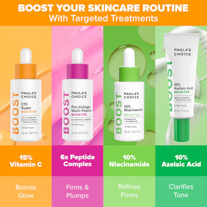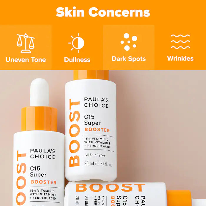 El Paula’s Choice C15 Super Booster es un tratamiento concentrado diseñado para iluminar la piel opaca, mejorar el tono desigual y ayudar a reducir visiblemente manchas y signos de envejecimiento. Formulado con un potente 15% de vitamina C pura (ácido L-ascórbico), este booster trabaja para aumentar la luminosidad, mejorar la textura de la piel y promover una apariencia más firme y uniforme.