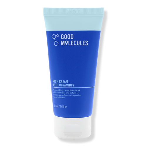 La Good Molecules Rich Cream with Ceramides es una crema hidratante profunda diseñada para nutrir, reparar y fortalecer la barrera cutánea, ideal para pieles secas, deshidratadas o sensibilizadas. Su fórmula rica pero confortable combina ceramidas esenciales que ayudan a retener la humedad y proteger la piel frente a agresores externos, dejando una sensación de suavidad duradera y confort inmediato.