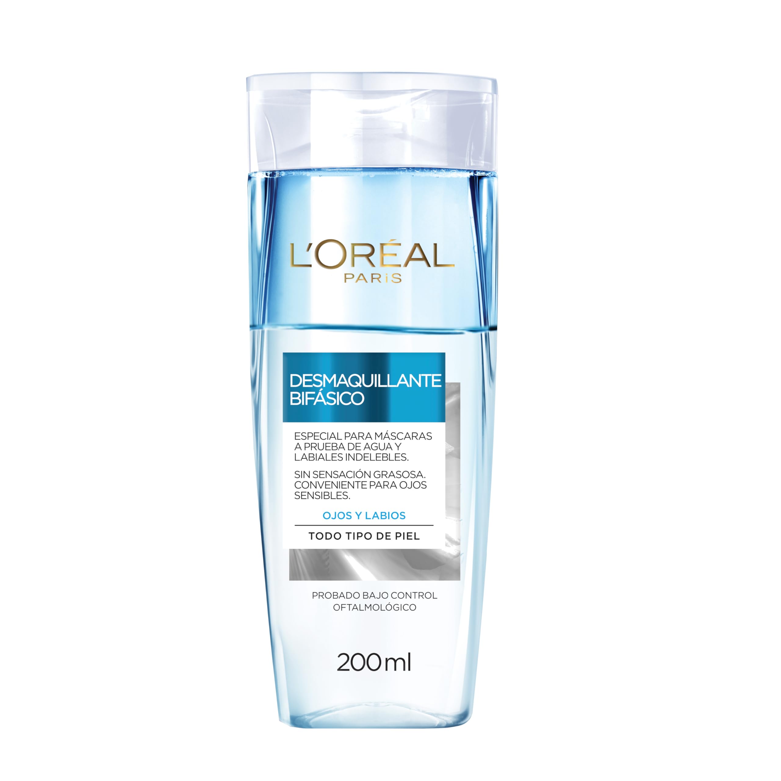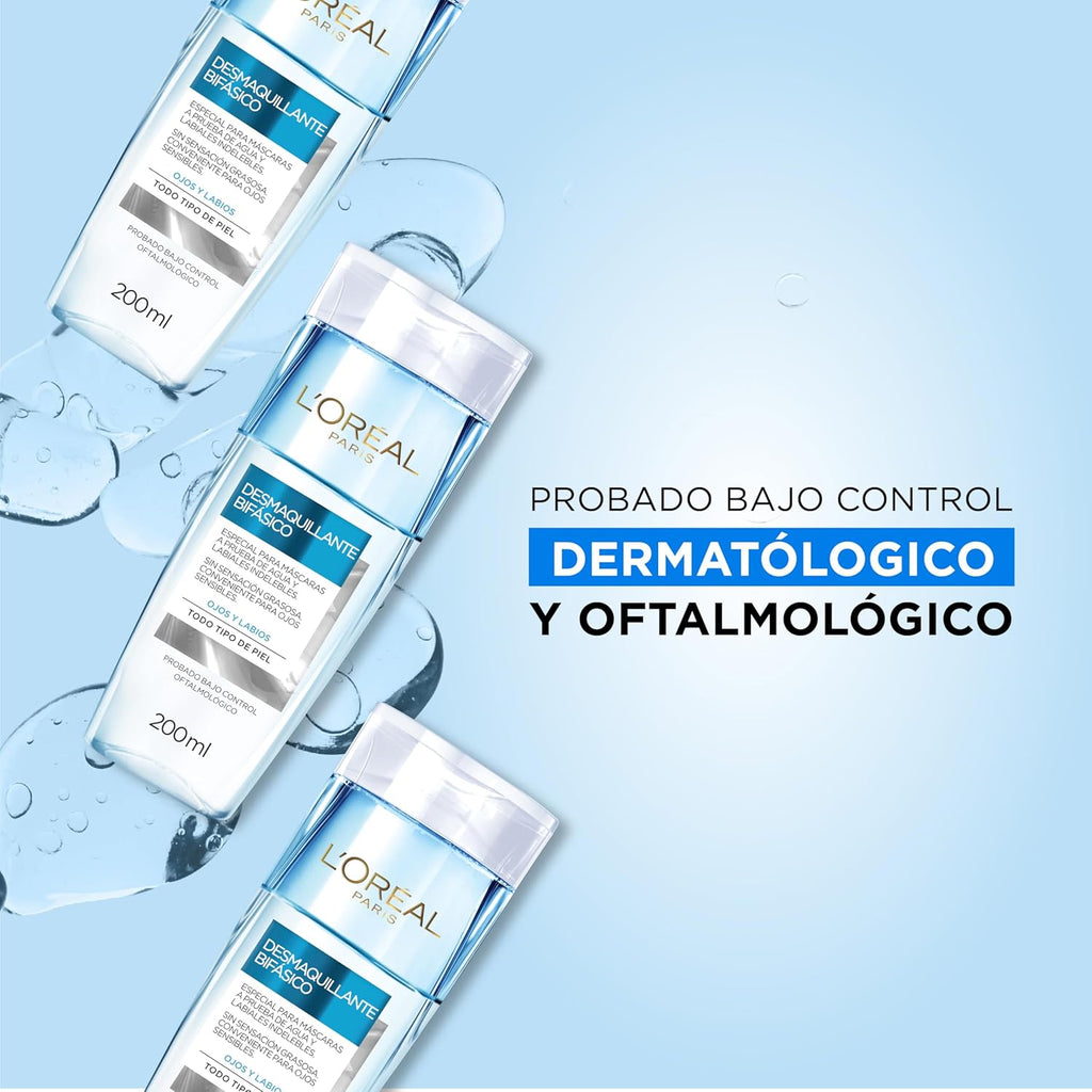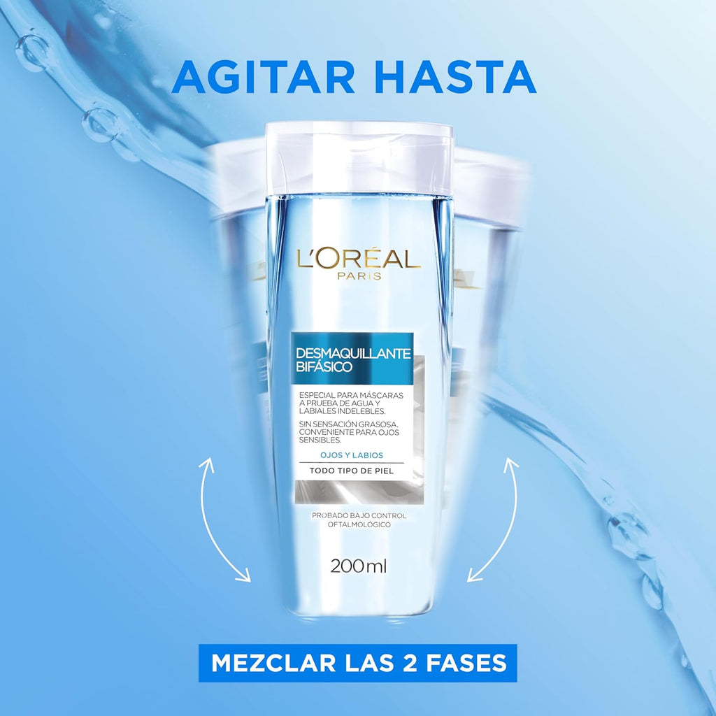 El Desmaquillante Bifásico de L’Oréal Paris elimina eficazmente el maquillaje resistente y a prueba de agua, incluyendo máscaras y labiales de larga duración, sin dejar sensación grasosa. Su fórmula de doble fase combina la eficacia del aceite con la suavidad del agua micelar, garantizando una limpieza profunda sin irritar la piel.
