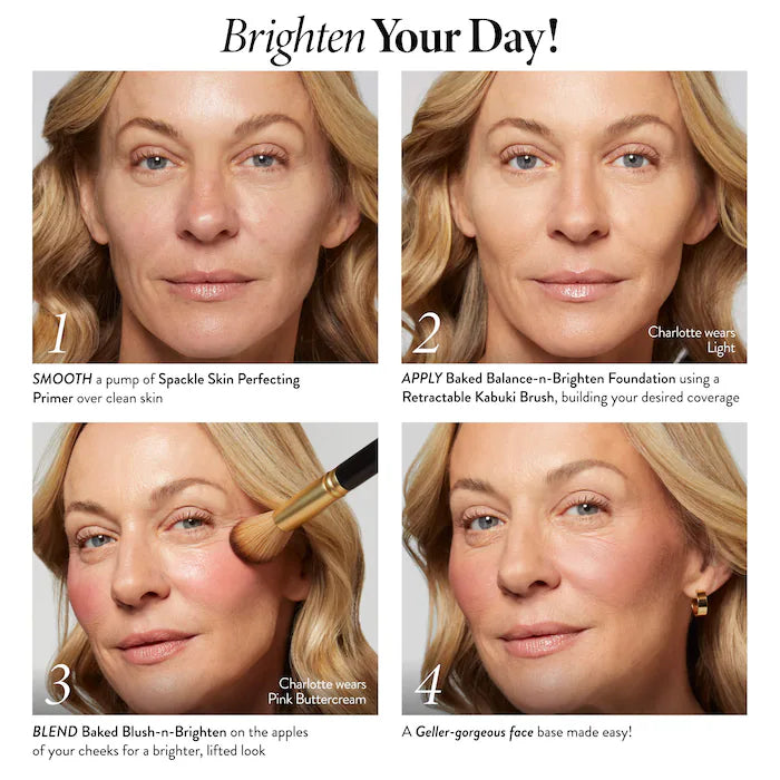 Balance-n-Brighten Color Correcting Baked Powder Foundation + Kabuki Brush es un dúo icónico diseñado para lograr un acabado natural, uniforme y luminoso en un solo paso. Este set combina la reconocida base en polvo horneado de la marca con una brocha kabuki perfecta para una aplicación precisa y profesional.