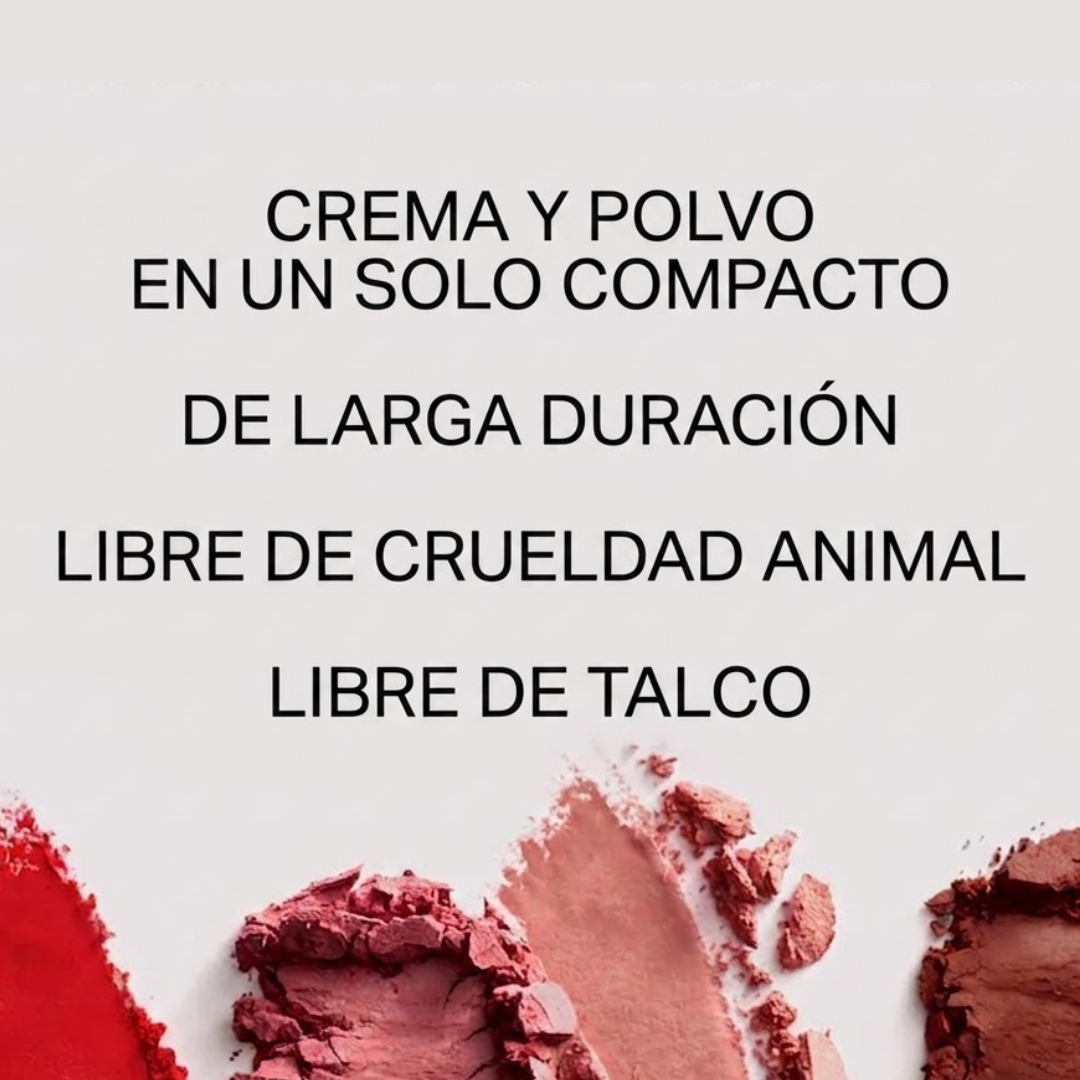 La combinación de fórmulas en crema y en polvo permite crear un color más duradero que se funde con la piel, aportando un acabado suave, luminoso y de aspecto natural.